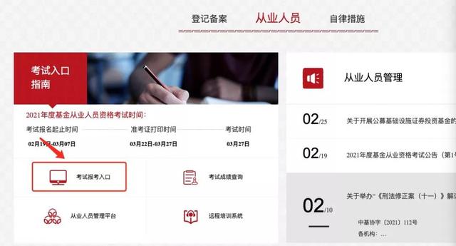 第一步:登陆“中国证券投资基金业协会”官网——考试报考入口。