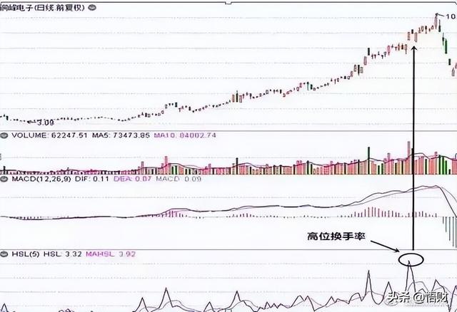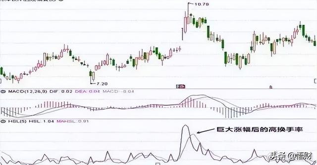 个股在相对高位突然出现高换手率而成交量突然放大,一般成为下跌前兆的可能性较大。这种情况多伴随有个股或大盘的利好出台,此时,已经获利的筹码会借机出局,顺利完成派发,“利好出尽是利空”的情况就是在这种情形下出现的。对于高位高换手率,投资者应谨慎对待。