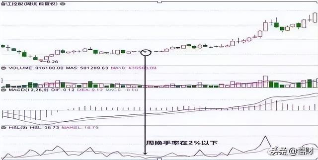 长时间低换手率的个股往往是陷于长期低迷行情中,此时投资者不宜介入,而应等待其放量拉长阳、趋势彻底转强后,才能考虑参与投资。