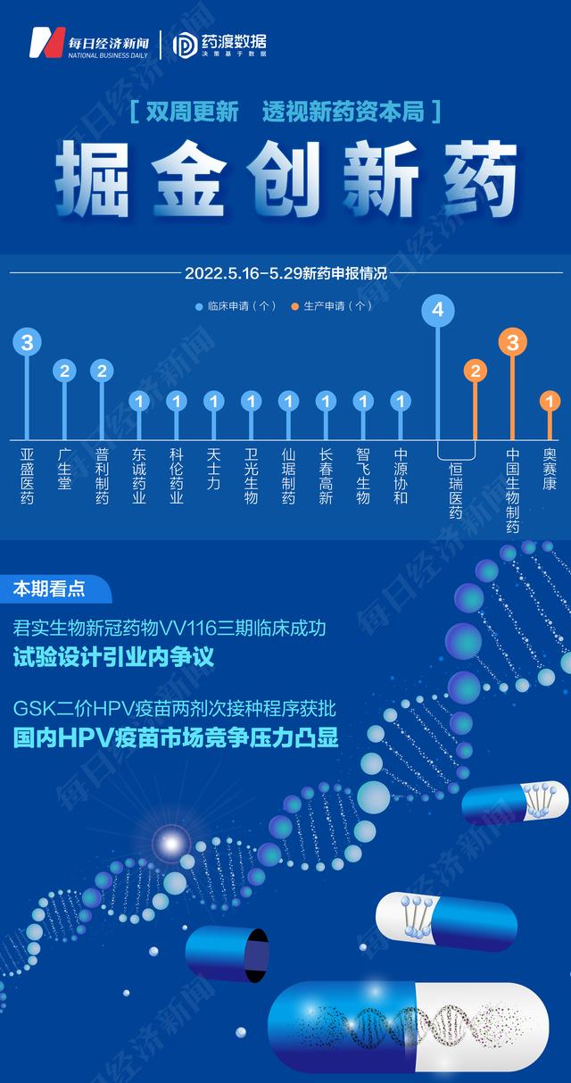 本文摘要:每经记者:林姿辰 每经编辑:魏官红《掘金创新药》由每日经济新闻联合药渡数据共同推出,旨在解读新药研发进展与趋势,剖析产品竞争力与市场前景,洞察医药资本脉络,见证医药产业高质量发展。根据药渡数据,2022年5月16日至2022年5月29日,国… …
