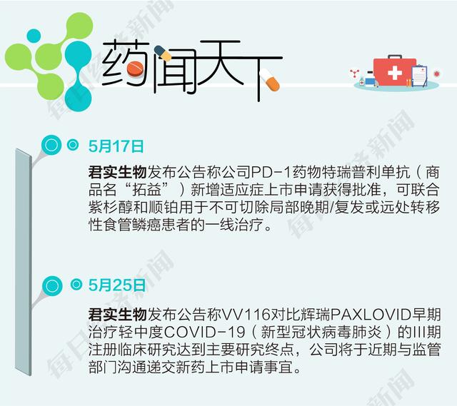 1、君实生物VV116头对头辉瑞Paxlovid成功,PD-1抗体药物新增食管鳞癌适应症