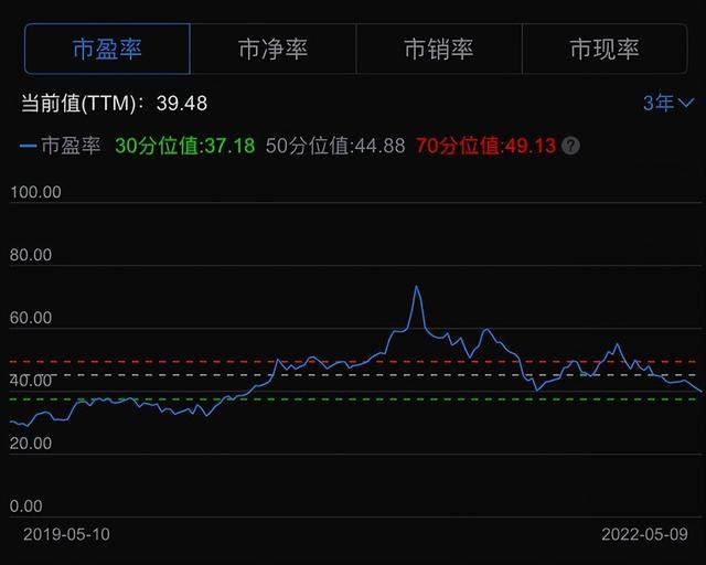PE-TTM 39.48,位于近3年30分位值上方;PB 39.48,位于近3年30分位值下方,低PE中低组合(相对)。