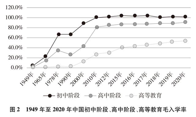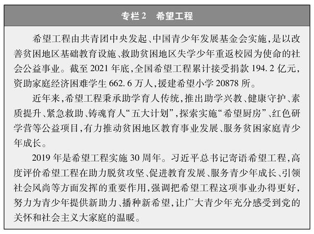 教育机会更加均等。中国教育事业优先发展不断深化,中国青年享有更加平等、更高质量的教育机会。2021年,中国义务教育巩固率达95.4%;高中阶段毛入学率达91.4%;高等教育毛入学率达57.8%、在学总规模达4430万人,居世界第一,越来越多的青年打开了通往成功成才大门的重要路径。覆盖学前教育至研究生教育的学生资助政策体系建成且日趋完善,2020年资助资金总额超过2400亿元、资助学生近1.5亿人次,实现“三个全覆盖”②。义务教育阶段进城务工人员随迁子女、农村和贫困地区学生等群体受教育权益得到充分保障。2020年,85.8%的进城务工人员随迁子女在公办学校就读或享受政府购买学位服务;2012年至2021年,农村和贫困地区重点高校专项招生计划定向招生超过82万人,让更多的青年公平享有接受更好教育的机会,阻断贫困的代际传递。
