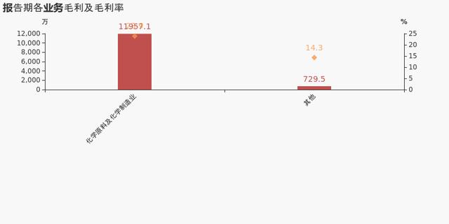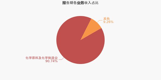 从业务结构来看,“化学原料及化学制造业”是企业营业收入的主要来源。具体而言,“化学原料及化学制造业”营业收入为5亿,营收占比为90.7%,毛利率为23.9%。