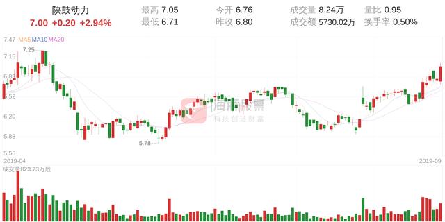 陕鼓动力今日上涨2.94%,股价为7.00元,成交金额为5730.02万元,成交8万手,换手率为0.50%。