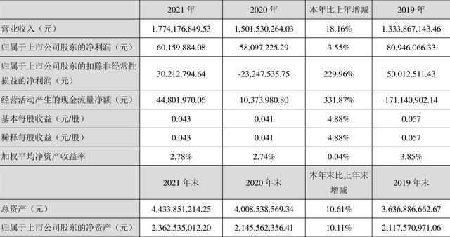 数据显示,2021年公司加权平均净资产收益率为2.78%,较上年同期增长0.04个百分点;公司2021年投入资本回报率为2.69%,较上年同期增长0.25个百分点。