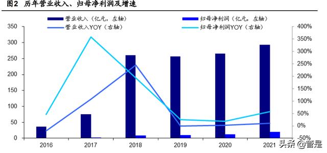 公司拥有煤矿机械和汽车零部件两大业务板块。煤机板块主要业务为煤炭综采工作 面液压支架、刮板输送机及其零部件、煤炭智能化开采系统的研发、设计、生产、销售 和服务。汽车零部件产品主要包含汽车动力系统零部件、底盘系统零部件、起动机及发 电机,包括两大品牌亚新科和 SEG。 2016 年以来,公司营收及归母净利整体稳步提升,尤其是营收方面,在完成对 SEG 汽车零部件业务的收购后,2018 年公司营收水平迈入 250 亿元左右水平。2021 年,公 司实现营收/归母净利 292.9/19.5 亿元,同比+10.5%/+57.2%。