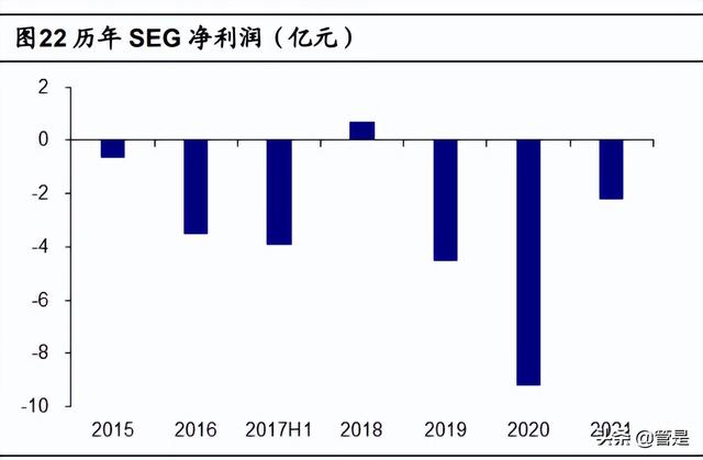 2015-2017H1,SEG 模拟合并营业收入分别为 99.5/109.4/64.4 亿元,净利润 -0.7/-3.5/-3.9 亿元。其中净利润主要受 SEG 2015 年 6 月启动的业务剥离而产生的一次 性剥离费用的影响,剔除与剥离重组直接相关的费用后,2015-2017H1 净利润为 0.8/2.2/-0.3 亿元。2018 年汽车零部件市场总体运行平稳,产生净利润 0.7 亿元,其中 因并购 SEG 形成的金融负债计提的税后利息支出的影响额为-0.9 亿元。2019 年受汽车 行业形势下滑影响,净亏损-4.5 亿元,其中因 BRM 技术升级带来的资产减值对利润的 影响额为-2.5 亿元。2020 年 SEG 受境外新冠肺炎疫情持续爆发、境外大量整车厂停产 停工及汽车行业下行压力影响,收入下滑。2020 年 10 月 28 日通过 SEG 业务重组议案, 实现全球范围内资源整合,优化配臵,产能由高成本向低成本地区转移,多维度降本增 效,提高运行效率,改善盈利能力。业务重组相关费用合计-6.5 亿元,包含重组费用后 2020 年 SEG 净亏损-9.2 亿元。2021 年随疫情影响减弱,全球汽车市场逐步恢复,SEG 实现营业收入 120.6 亿元,同比+8%;净亏损-2.2 亿元,其中包括重组费用-2.1 亿元。