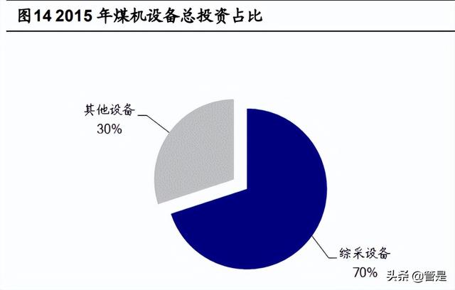 根据创力集团招股说明书,一般而言以“三机一架”为核心的综采设备占煤机设备 总投资的 70%,而其中又以液压支架占比最大,一般超过 45%,掘进机和采煤机分别占 到 12%和 13%的比重,刮板运输机等输送设备约占 10%,其他各种设备约占 20%。