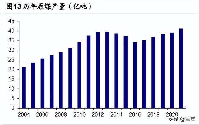 更替需求指的是由于设备使用达到设计寿命或是老化,而产生的设备更新替换的需 求。一般来说,我国煤机产品设计寿命一般在 5 年,即更替周期平均为 5 年。因此,从 时间角度看,2022~2025 年煤机更替需求主要取决于 2017~2020 年煤机投资额。但我 们认为,煤机生产时虽然有平均设计寿命,但实际工作中应按工作量(即煤炭产量)来 考虑更替周期而非平均设计寿命,即更替周期应与产量直接挂钩。因此,从煤炭产量角 度看,整体仍然是不断上升的(2014~2016 年短暂回落),也就是说越往后更替周期越 短、更替需求越大,2022~2025 年更替需求预计会持续增加。