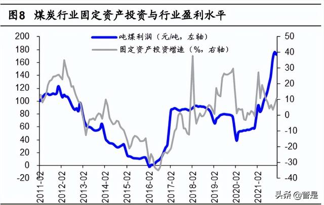 煤矿机械(以下简称“煤机”)在广义上包括综采设备、洗选设备、安全设备、辅助 设备和露天开采设备等,在狭义上专指“三机一架”,即采煤机、掘进机、刮板输送机 和液压支架。煤机的下游是煤炭行业,煤机的市场空间与煤炭行业发展紧密相。 根据《煤机行业“十四五”发展趋势与策略研究》,2001~2019 年, 煤炭行业固定 资产投资的年复合增长率为 16.5%,同期煤机工业产值的年复合增长率 15.1%,二者非 常接近,2017~2019 年,煤机工业产值基本维持 1000~1400 亿元。而煤炭行业固定资 产投资往往与行业盈利水平正相关:1)盈利高位时,行业扩张动力足,带来煤机新增 需求(2021 年以来,固定资产投资与盈利水平有所背离,我们认为主要还是与碳达峰碳 中和大背景有关);2)盈利高位时,对煤机的更新换代需求或加速,我们认为主要原因 在于维修煤机所造成的停工损失远大于采购新设备的投入成本。