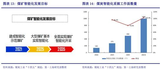 当前煤价高位运行,煤企盈利改善,智能化资本开支意愿强烈,在此背景下随着《关于加快煤矿智能化发展的指导意见》、《煤矿智能化建设指南(2021年版)》等政策不断加码,煤矿智能化改造进度持续提速。