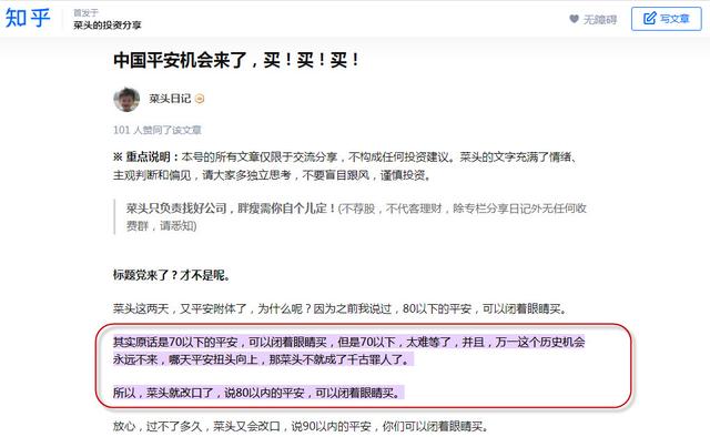 知乎有网友更是大言不惭地说:70以下的平安可以闭着眼睛买,买,买!