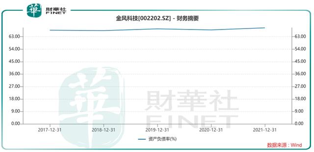 但作为风电龙头,金风科技近年来资产负债率一直处于一个较高的水平,2021资产负债率已接近70%。