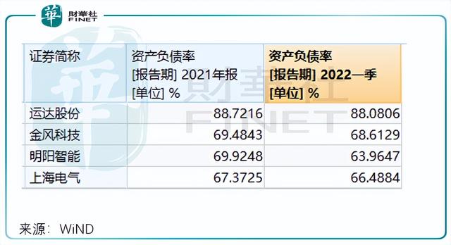 其实风电主机厂本身就是以重资产运营为底盘,对比行业其他主机厂企业,2021年金风科技的资产负债率要低于运达股份。