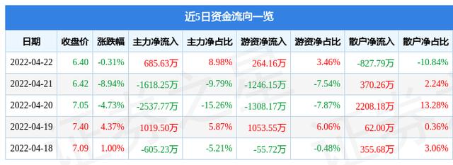 资金流向数据方面,上个交易日主力资金净流入685.63万元,游资资金净流入264.16万元,散户资金净流出827.79万元。