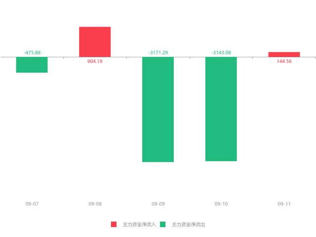 昨日(2020-09-10)该股净流出金额-4617.44万元,主力净流出-2297.77万元,中单净流出-1809.45万元,散户净流出-510.21万元。