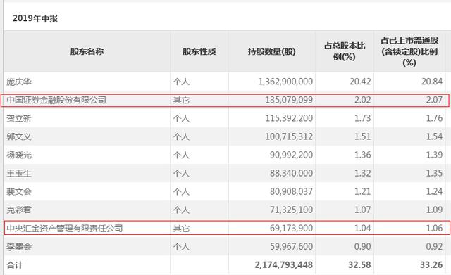 另一方面,机构持股比例虽然已经降低至3.03%,但除四只公募基金外,国家队中国证金和中央汇金仍位列第二大和第九大流通股股东行列,合计持有2.04亿股!