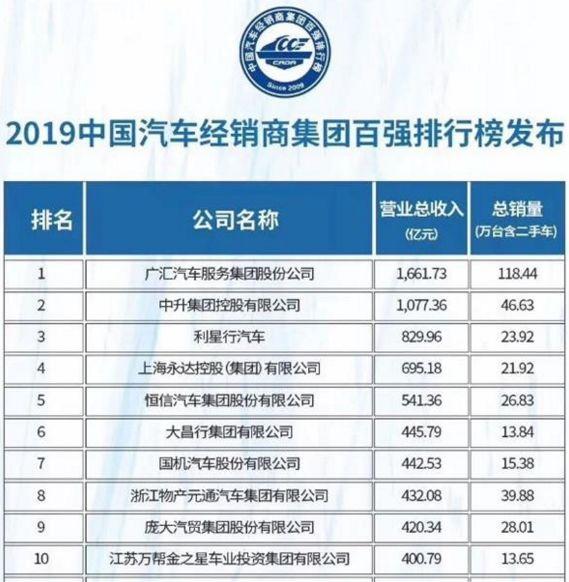 而如今在汽车销售量方面,根据中国汽车流通协会发布的2019年中国汽车经销商集团百强排行榜,广汇汽车仍占据首位,但庞大集团排名如今已经滑落至第九位。