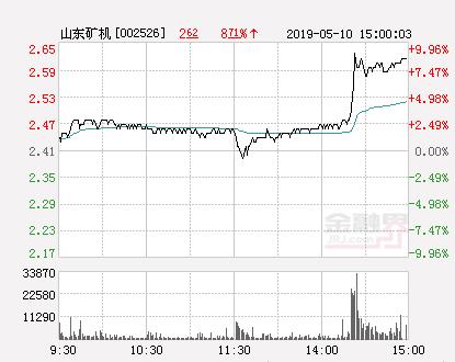 金融界网站5月10日讯 今日山东矿机开盘报2.43元,截止14:27分,该股涨9.96%报2.65元,封上涨停板。