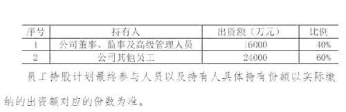 该项员工持股计划的实施方案是:由信托方为本次员工持股计划设立集合资金信托计划,并全额认购集合资金信托计划中的次级份额。 其中,公司董事、监事、高管出资额为1.6亿元,占比40%;其他员工出资额2.4亿元,占比60%。