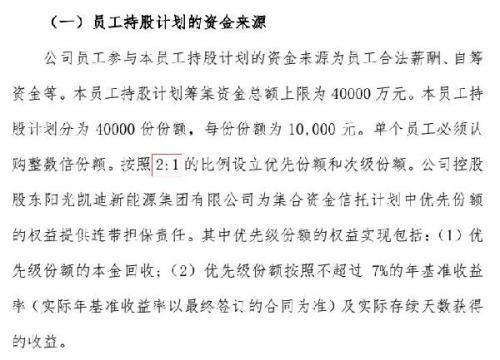 公告显示,2017年5月23日,凯迪生态以信托计划的方式完成员工持股计划买入,锁定期为12个月,浦发银行-宁波分行为优先受益人,凯迪生态(员工持股计划)为一般受益人,二者的份额比例为2:1。
