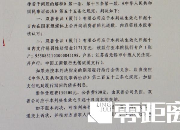 今年5月13号,法院对此案进行一审宣判,判决双善公司在国家级媒体上公开向消费者赔礼道歉,支付惩罚性赔偿金2172万元。该案的发起是省内首起巨额赔偿性消费民事公益诉讼案。