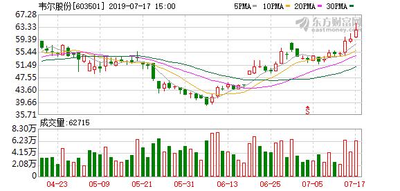 本文摘要:7月22日,韦尔股份盘中最高价65.59元,股价创历史新高。截至收盘,韦尔股份最新价为63元,上涨4.53%,全日成交金额达到4.93亿元,换手率5.59%。根据最新收盘价进行计算,韦尔股份总市值为287.09亿元。Choice数据显示,韦… …