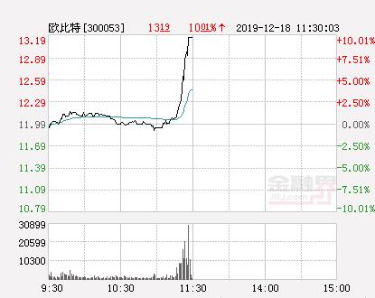 金融界网站12月18日讯 今日欧比特开盘报11.94元,截止11:30分,该股涨10.01%报13.19元,封上涨停板。