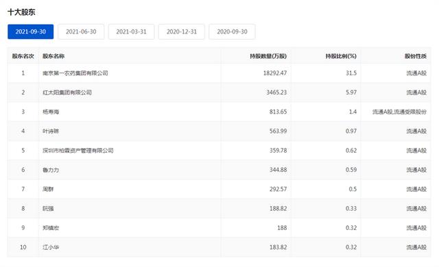 新华日报财经了解到,红太阳成立于1991年,1993年在深圳主板上市,公司专注绿色农药、动物营养和上下游一体的“三药”中间体科研制造,第一大股东为南京第一农药集团有限公司(简称南一农),持股18292.47万股,占比31.5%;杨寿海在红太阳持股813.65万股,占比1.4%,另在南京第一农药集团有限公司持股71.93%,从而成为实际控制人。