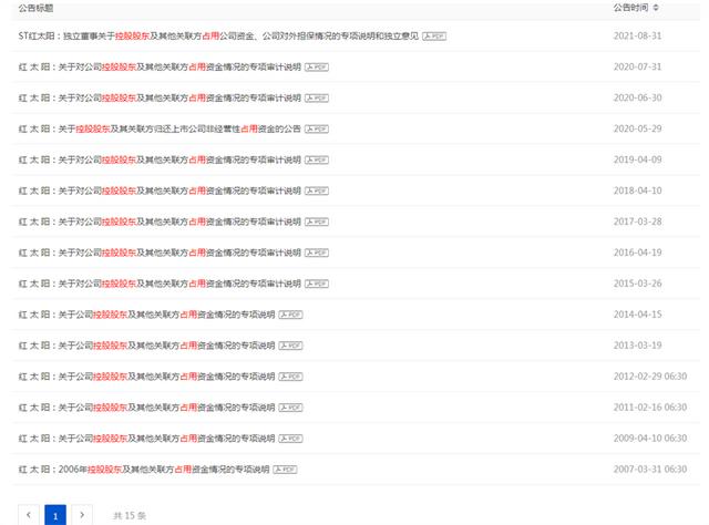是什么导致红太阳需要计提33.3亿元的减值准备金?记者查阅公司公告发现,原来其控股股东南一农及其关联方长期占用非经营性资金29.5亿元拒不归还,这不仅拖垮了上市公司,而且导致信息披露违法违规被证监会立案调查。