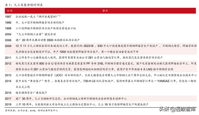 ①、子公司久立永兴合金,是久立特材和永兴材料合资设立的一家专门研发高品质特种合金新材料的公司,借助永兴材料的售货渠道,公司产品销售能力进一步加强。