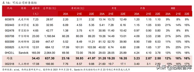 我们选取武进不锈、金洲管道、常宝股份、中信特钢、抚顺特钢、太钢不锈作为可比公司。