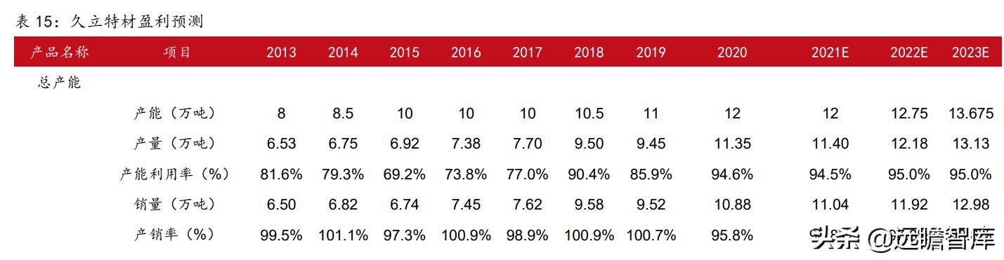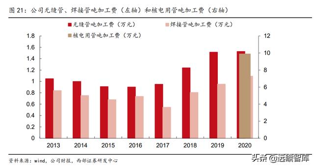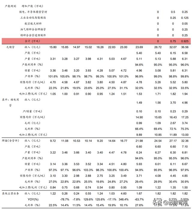 1、2020年无缝管产能5.4万吨,随着募投项目陆续达产,我们预计2021-2023年公司无缝管产能为5.4/6.15/6.58万吨。