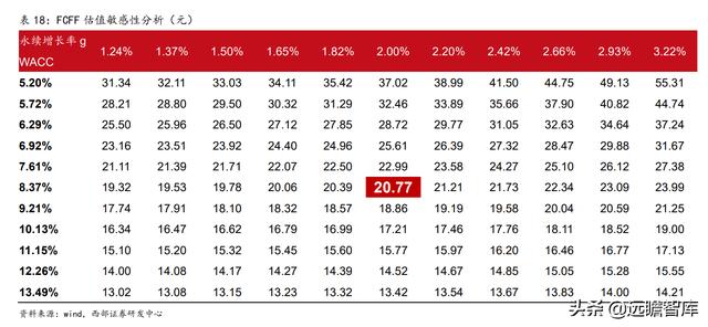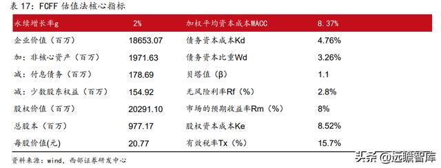 3、根据FCFF估值法得到公司目标价为20.77元。