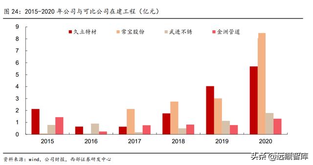 公司在建产能逐年增加,2020 年在建工程达 5.69 亿元,随着在建产能的逐步释放,将为未来几年久立营收增长提供坚实支撑,并且在建项目偏向军工、航天等高端领域,未来毛利率水平也有望继续提升。