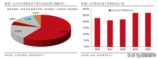 公司产品下游涉足六大板块,油气能源是公司传统下游,高端制造是公司积极布局的新兴下游。