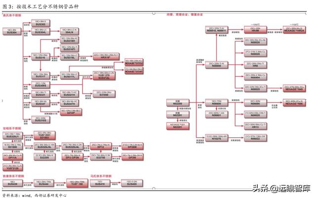 按照工艺流程分,高端工业用不锈钢可以分为奥氏体、双相系、镍基合金等;按照产品分,可以分为无缝管、焊接管、管件等,生产工艺极其复杂,一项技术的突破和掌握需要很多次试验和大量经验积累。