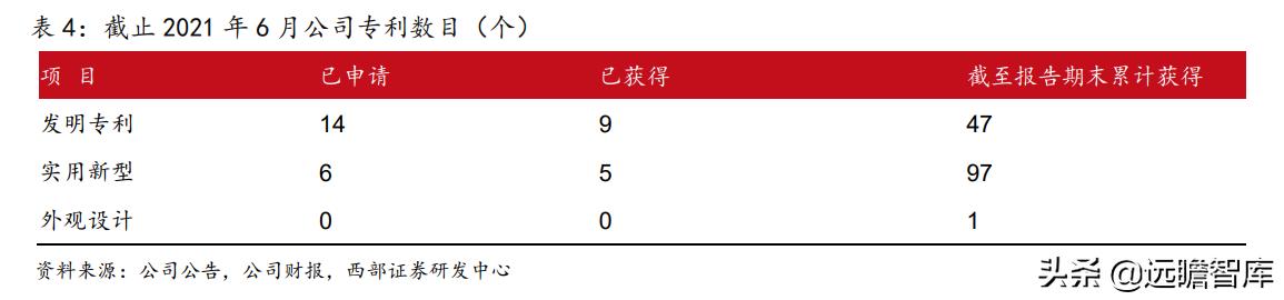 截止 2021 年 6 月,公司研究院拥有博士 10 名,研发人员 375 人,累计获得发明专利47 项,实用新型专利 97 项,外观设计 1 项。