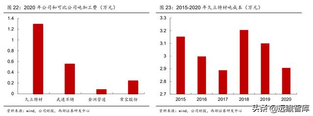 2020 年,公司吨产品加工费 1.29 万元/吨,远高于同行武进不锈、金洲管道、常宝股份。