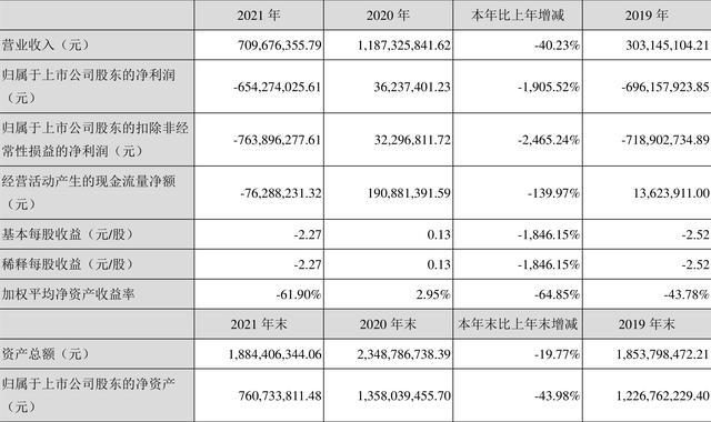 数据显示,2021年公司加权平均净资产收益率为-61.90%,较上年同期下降64.85个百分点,长期低于行业平均;公司2021年投入资本回报率为-51.20%,较上年同期下降54.34个百分点。