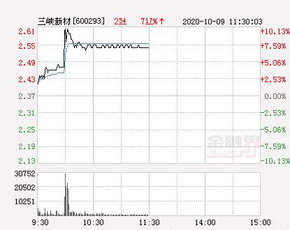 金融界网站10月9日讯 今日三峡新材开盘报2.41元,截止10:01分,该股涨10.13%报2.61元,封上涨停板。