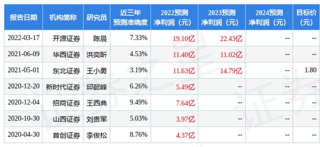 证券之星数据中心根据近三年发布的研报数据计算,招商证券王西典研究员团队对该股研究较为深入,近三年预测准确度均值为9.49%,其预测2022年度归属净利润为盈利7.64亿,根据现价换算的预测PE为27.33。
