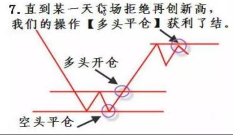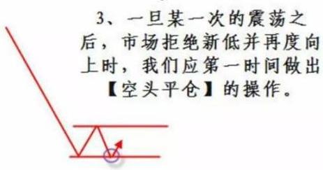 3、一旦某一次的震荡之后,市场拒绝新低并再度向上时,我们应第一时间做出【空头平仓】的操作。