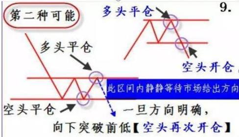 9、第二种可能:一旦方向明确,向下突破前低【空头再次开仓】,此时静观其变,选择方向。