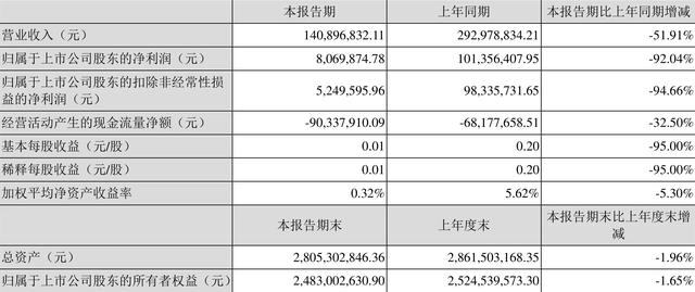 2022年一季度,公司加权平均净资产收益率为0.32%,同比下降5.30个百分点,环比上升3.59个百分点。