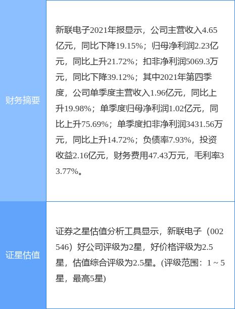 原文标题:新联电子最新公告:2021年净利增21.72%至2.23亿元 拟10派1.2元