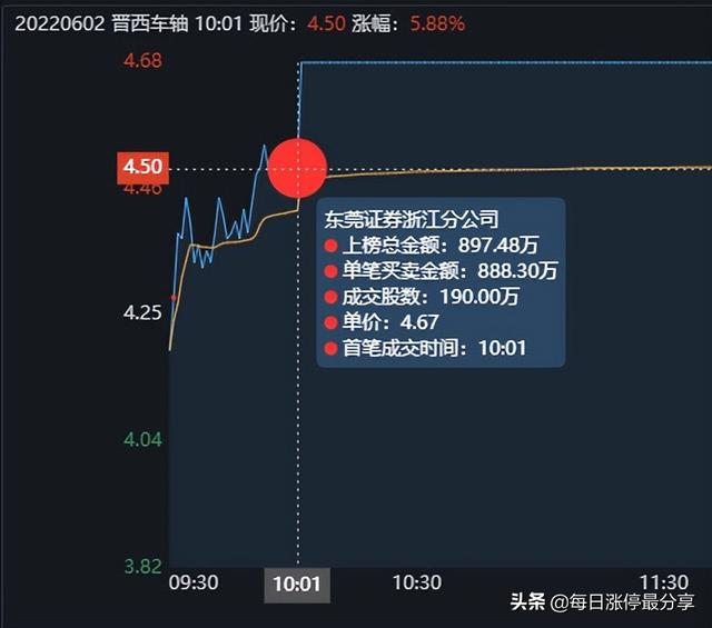 第二位,东莞证券浙江分公司,10:01分,冲击涨停时贡献了1.9万手。