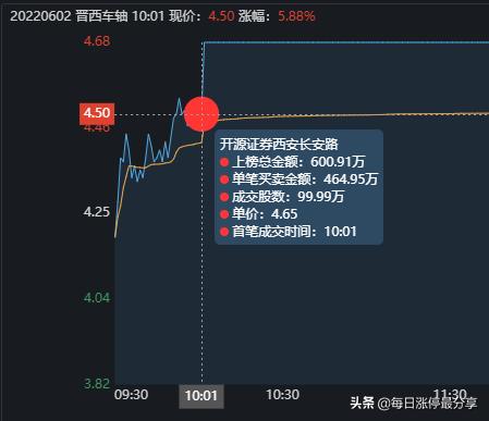 第三位,长安路,全天买入1.29万手,合计601万,10:01分,冲击涨停时贡献了9999手,这三位约占冲板资金的三分之二。