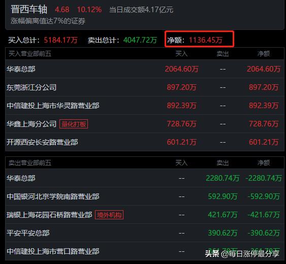 晋西车轴,流通市值56.54亿,当天成交了4.17亿,换手率7.65%。